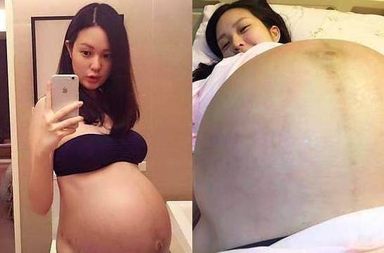 肚子也大得惊人,奇怪的是脸型完全没有变化,这让多少脸肿的妈咪羡慕嫉妒恨啊。