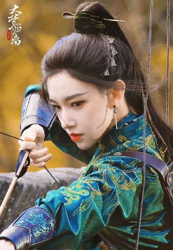 程潇在大梦归离的造型英气飒爽,扎马尾射箭的妆造很好看。