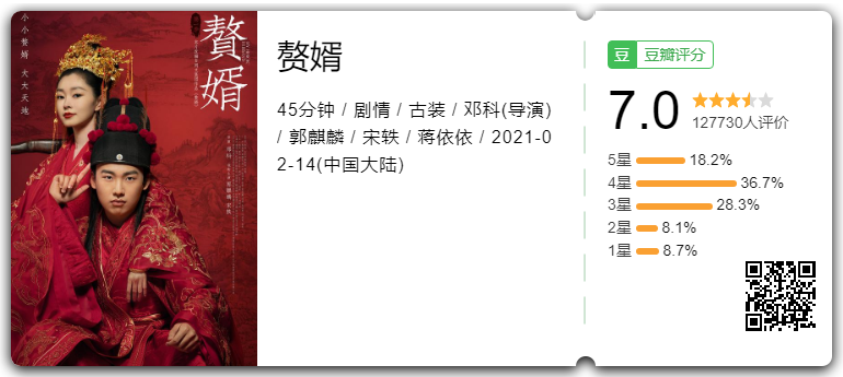 桃的《赘婿》改编得当,选角成功,郭麒麟宋轶这对姐弟cp热度久久不下,点击率更是一骑绝尘。