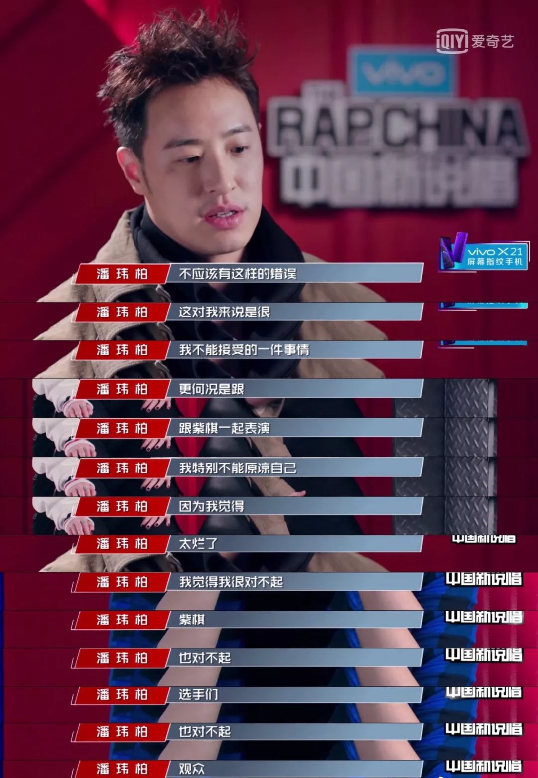 虽然演出依然获得高分评价,甚至有选手们以为是刻意设计的空拍,虽然邓紫棋安慰他是因为后台故障空等太久而影响了发挥,但是潘玮柏不给自己找任何借口,也拒绝搭档“送台阶”,向搭档、选手和观众真诚道歉。真正用行动诠释了说唱音乐最重要的精神keep real。