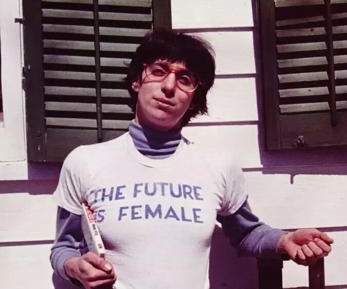 它第一次出现在一个书店纪念tee上,下图是摄影师Liza Cowan1975年给她当时的女朋友Alix Dobkin拍的照片。