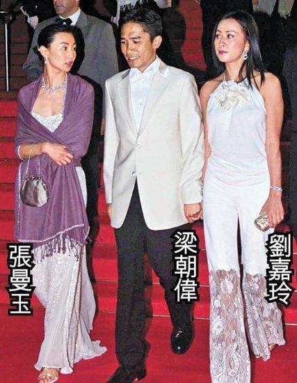 而事实上是,此时的梁朝伟已经有了刘嘉玲。2000年5月,就在梁朝伟和张曼玉绯闻传的最热时,《花样年华》去戛纳电影节宣传,梁朝伟一手牵刘嘉玲一手牵张曼玉的画面在各界引起山呼海啸般得舆论狂潮。两个女人都美的张扬夺目,却甘愿一起在梁朝伟身边做小女人。