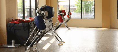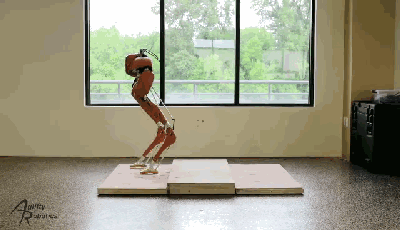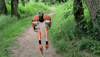 胫骨和脚踝上也分别有一个额外的自由度,这两个部分并不由电机驱动,而是附着在弹簧上,有助于机器人处理前进道路上的障碍物,就算踏在台阶边缘也可以保持平衡稳定。