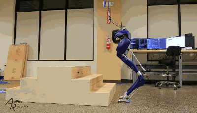 这个“爸爸”可不是乱叫的,由于Digit的整体架构完全基于Cassie之上,连研究人员都开玩笑说“Digit is a direct descendant of Cassie.(Digit是Cassie的直系后裔)”。Digit能够完成快递小哥的使命,在楼梯和不同地形之间跑来跑去,主要就是基于Cassie稳定的双腿。