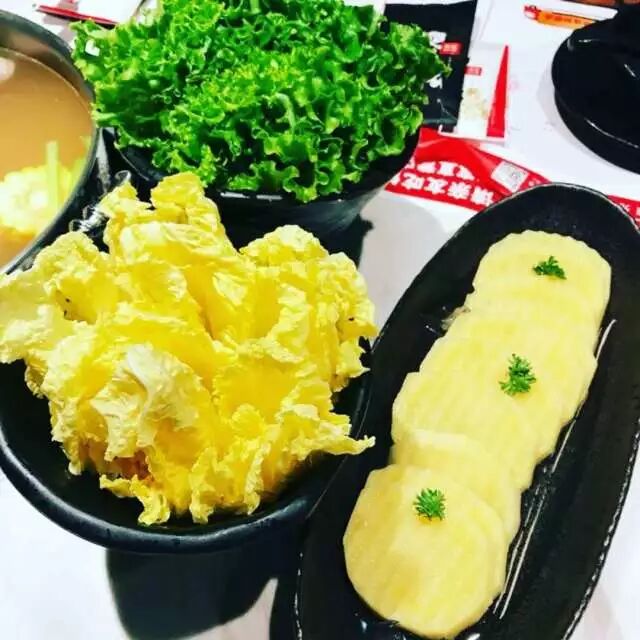 生菜、白菜和土豆片,火锅的素食主打哦~