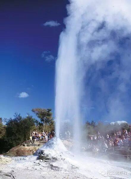 位于罗托鲁阿中心的间歇泉。其形成是由地壳及热活动从而导致地压增加, 当压力到达一定时,随着一阵震人心魄的巨响, 高温水汽就开始向泉口往外喷。喷射时水柱笔直向上,高达30余米,似银链闪耀,白莲盛开, 每天上午10:15分准时喷射, 三十分种后才会自然停止。
