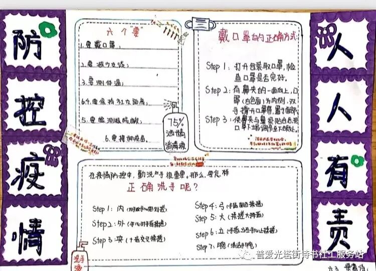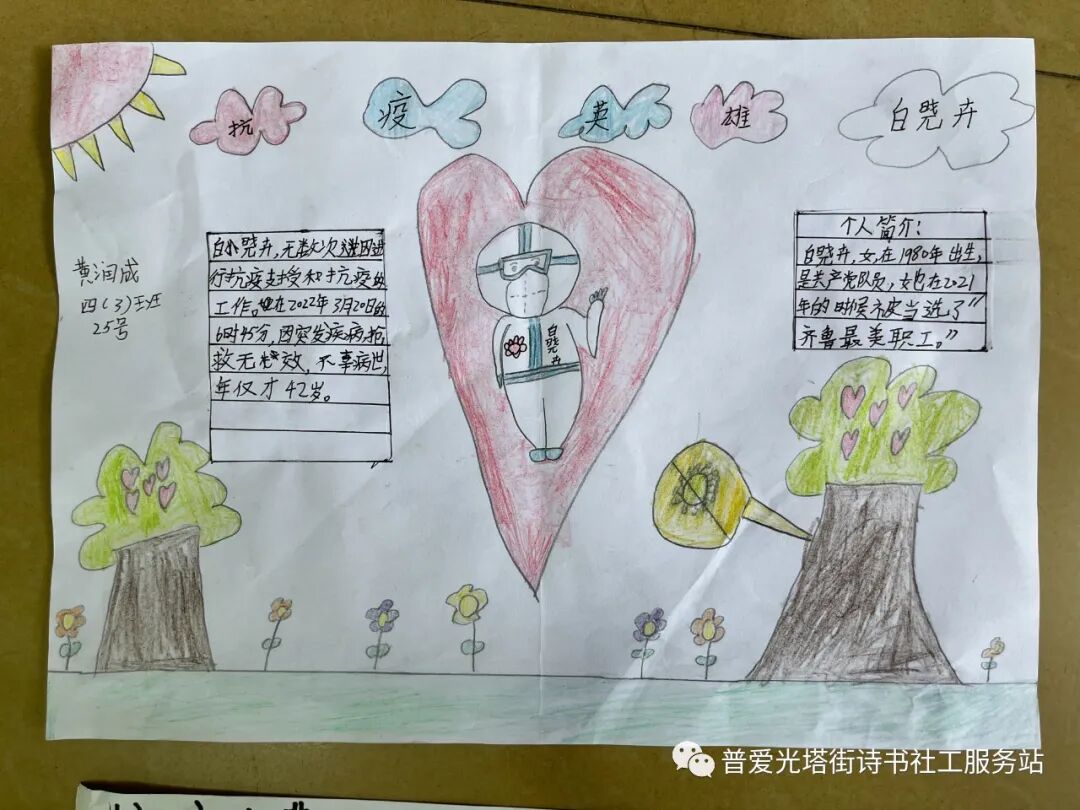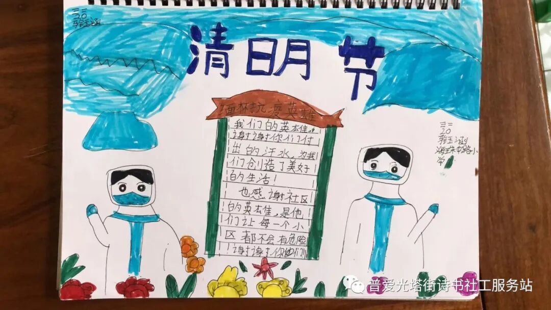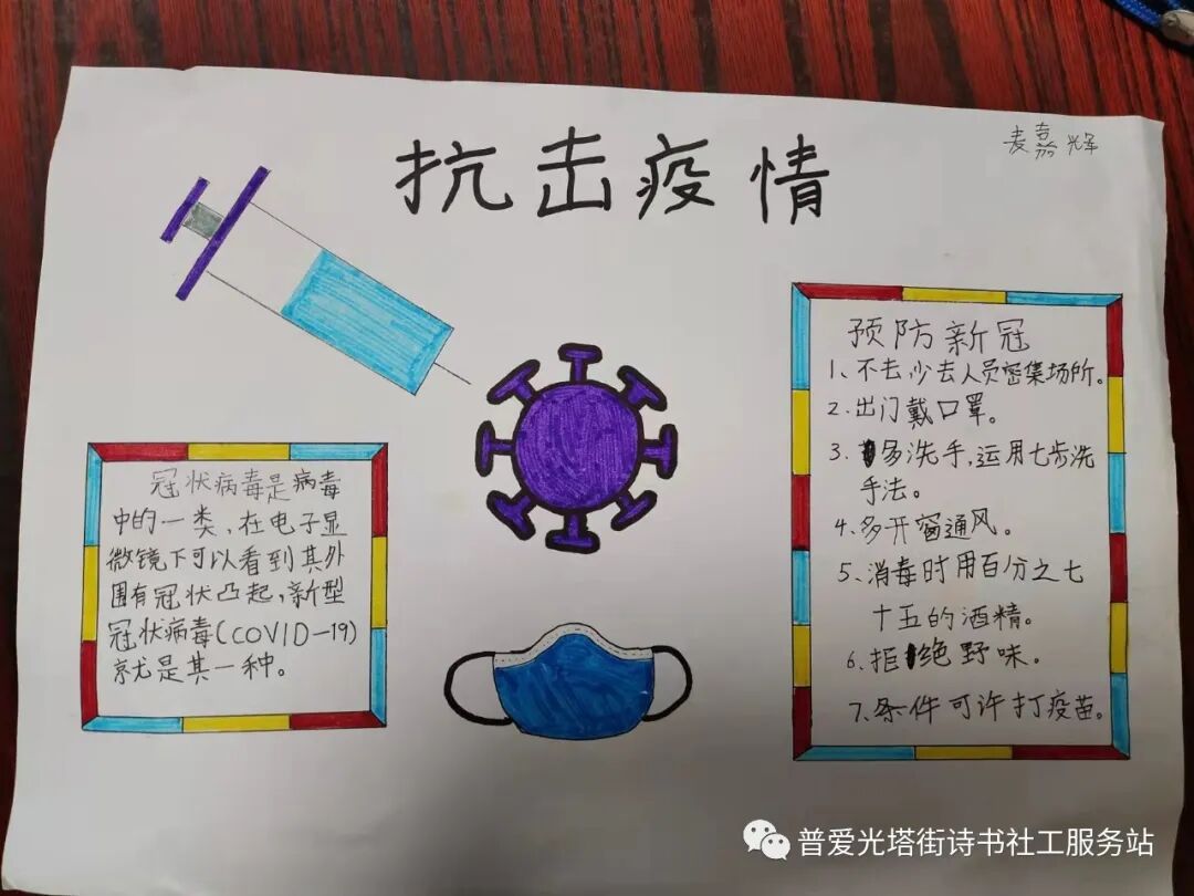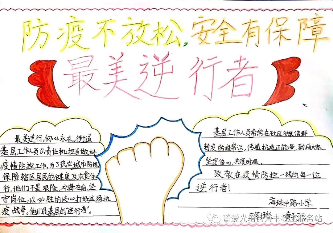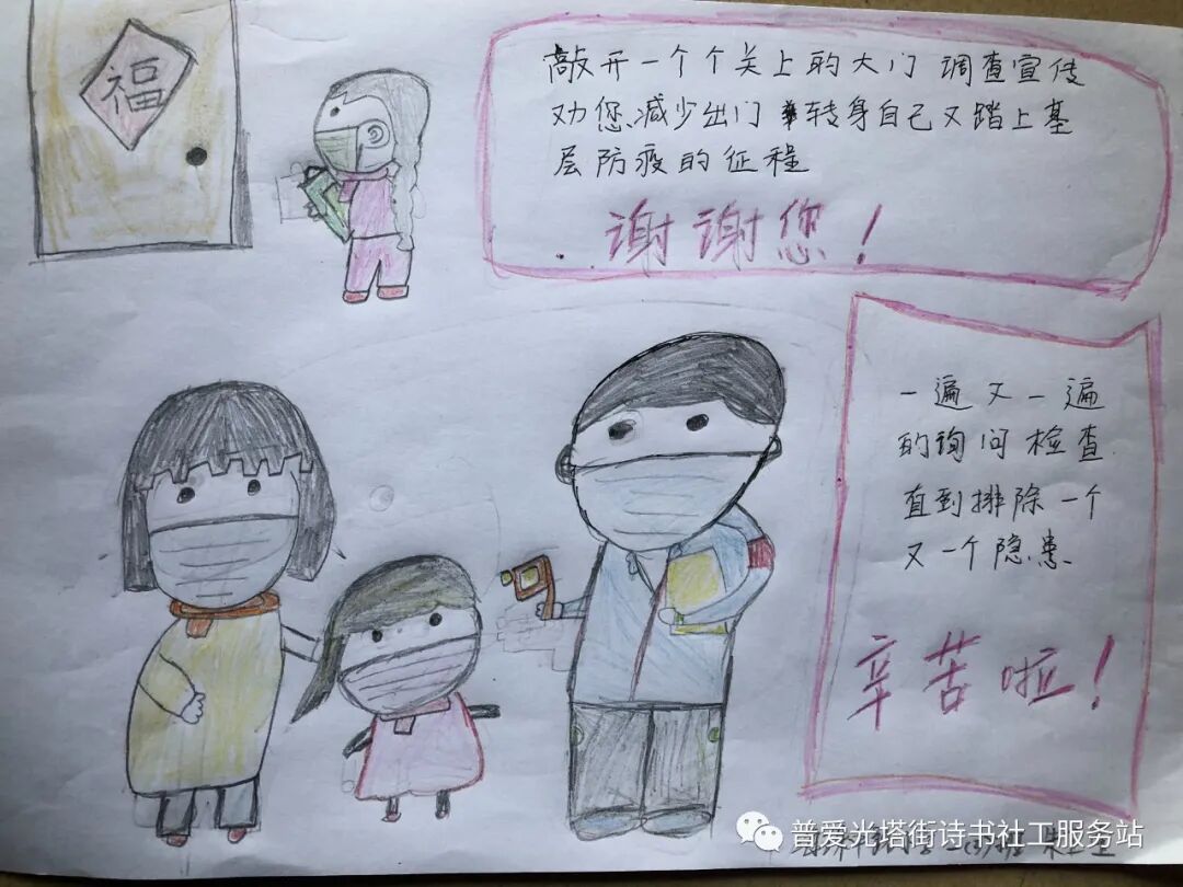 为向处在疫情防控一线的社区工作者表达敬意,广州市光塔街诗书社工站服务站举行致敬战“疫”社区工作者·手抄报征集活动。同学们通过制作手抄报的形式,向处在疫情防控一线的社区工作者表达崇高的敬意。