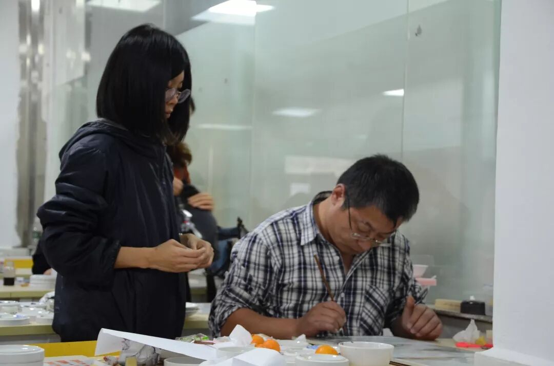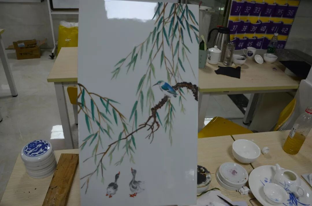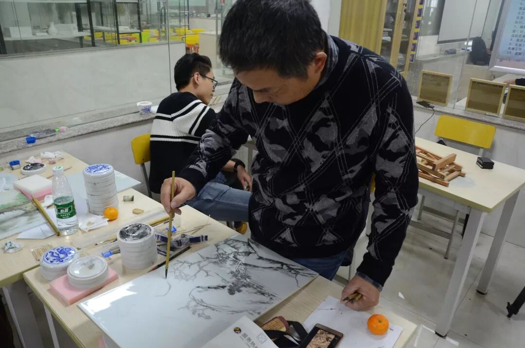 学员们渐渐的开始将这些作画技巧深入到绘画实践当中,通过对这些技法的一次次尝试,大家对瓷板画意境的表现技能显得更加娴熟。学员双方也互相交流,互相借鉴,提高了各自绘画的积极性,营造了共同学习的活跃氛围。此次的学习实践,让学员们在技法上以及思想上有了更高程度的理解,并且在自己的作品设计中得到了充分展现。