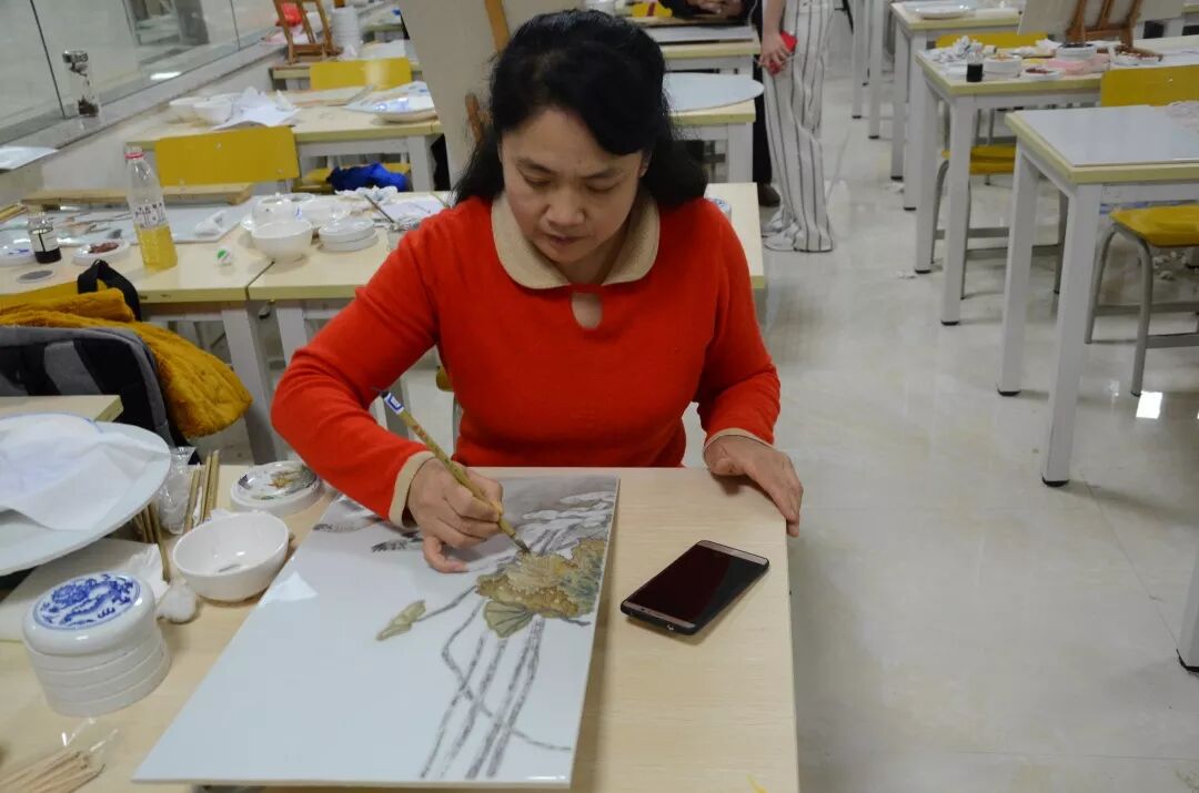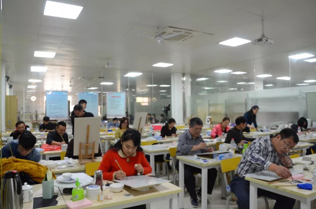 2018年11月29日上午,由南昌工学院传媒设计学院承办的“中国非物质文化遗产传承人群研修研习培训计划” ——瓷板画培训第十九讲第一期于中华民族实训中心A-019顺利开讲。南昌工学院传媒设计学院教师何曼婷带领学员们进入到关于瓷板画作品设计与制作的活动中。