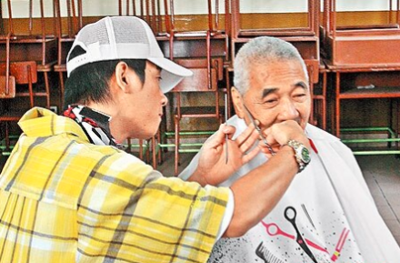 在理发店给人洗了一年的头后,陈小春当上了理发师。