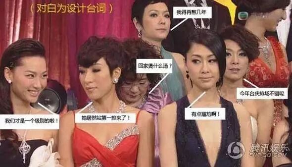 这又得从邓萃雯再拿视后说起,先看宣布邓萃雯拿奖的那一刻,邓萃雯春风得意,佘诗曼一脸苦笑,杨怡眼神放空,胡定欣站在第二排看着邓萃雯,注:按照惯例,一线女星都坐在第一排,越往后坐级数越低。