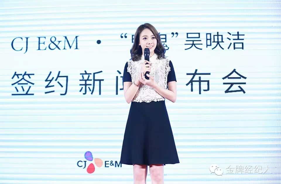 近几年吴映洁在音乐、影视、综艺等方面的表现亮眼而被韩国娱乐巨头CJ E&M关注,再加上鬼鬼参加韩国知名节目《我们结婚了》而让CJ E&M公司有了进一步与其合作的想法。昨日发布会现场,特意从韩国飞到北京参与签约仪式的CJ 娱乐中国总裁申殷浩现场致辞,并还代表公司向吴映洁送上了一支精美的麦克风,借以宣布吴映洁将重拾歌手身份,开始新的挑战,而鬼鬼也表示:“感谢公司帮自己完成出唱片的梦想。