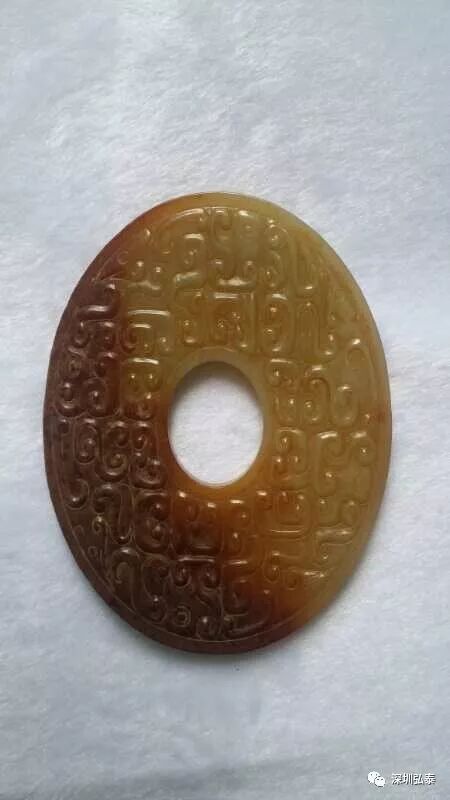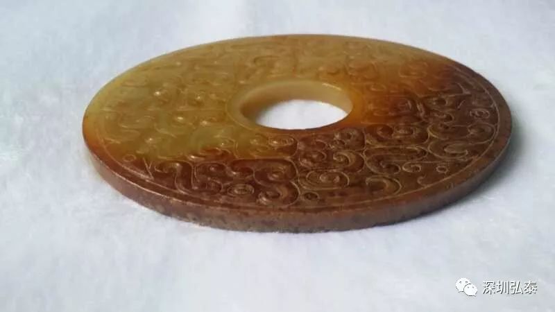 和田碧玉的颜色呈淡黄色,光下不透,细看里面有自然形成的条纹,里面有黑点,精光内敛,拿在手中盘摸一会,会感到有油的质感。光下看很通透,有条纹,有色差。