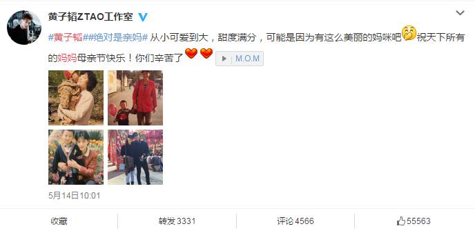 由于很多艺人工作常年在外,和妈妈聚少离多,母亲节的这天,也不乏很多人不能陪在妈妈身边,只能发微博聊表心意。