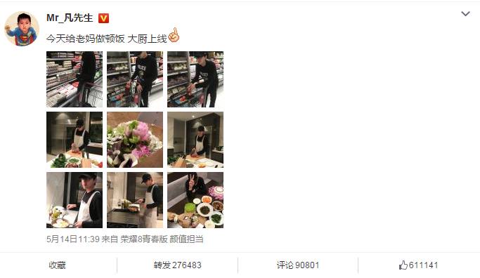 你们的凡先生,一大早就去超市买了新鲜的食材,亲手下厨给妈妈做饭。