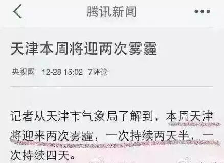 要说现在这天气预报怎么也跟闹着玩儿似的,难不成是为了让天津人民中场休息,呼吸一下新鲜空气,感受下生活的美好?