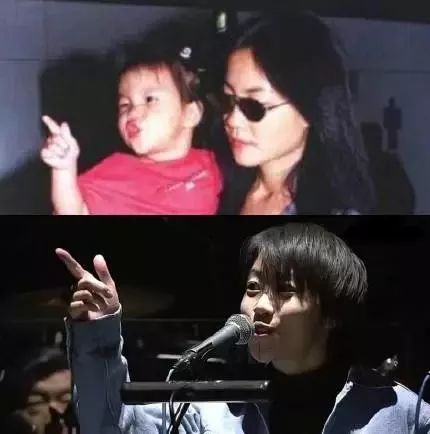 后来她在王菲演唱会上为王菲伴唱,“因为你要做期待与失落的帮凶”的时候,母女俩人互指,动作跟小时候一毛一样。