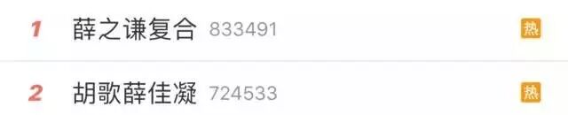 微博上薛之谦复合的消息都已经显示了爆的字样。