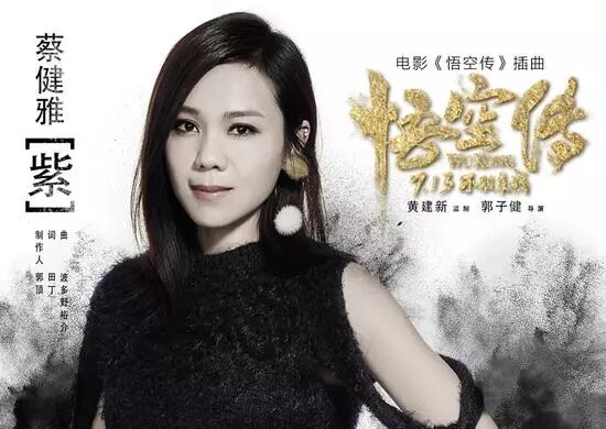 电影《悟空传》于今年7月13日在内地上映,而由蔡健雅演唱的电影插曲《紫》于7月14日正式发行,歌曲以电影中孙悟空与阿紫的凄美爱情故事为创作灵感,诠释心中有爱但却来不及相守的深深遗憾。歌曲在音乐与制作上斥重金打造,制作人郭顶加盟,也是蔡健雅与郭顶的首次合作,二人细心打磨歌曲,小到每句唱词的表达,都精益求精。