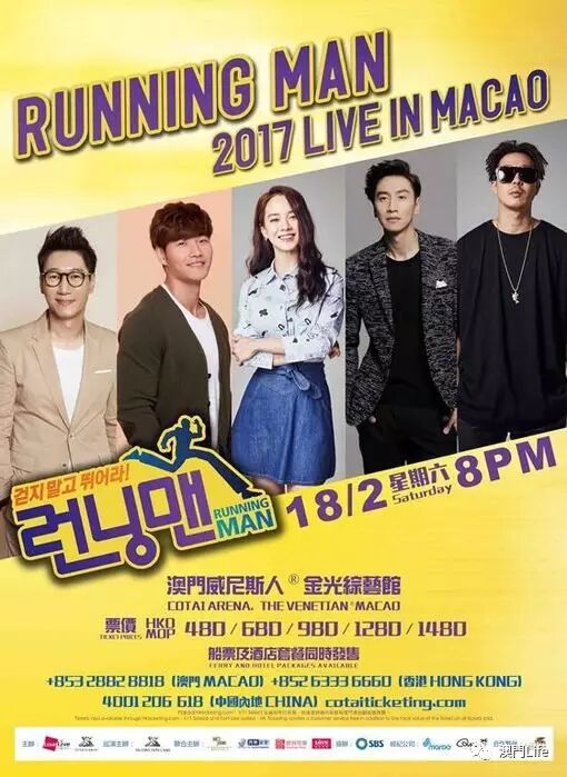 Running Man五名成员宋智孝、李光洙、金钟国、池石镇和HAHA将于2月18日来澳门威尼斯人金光综艺馆举行《Running Man 2017 》演唱会。
