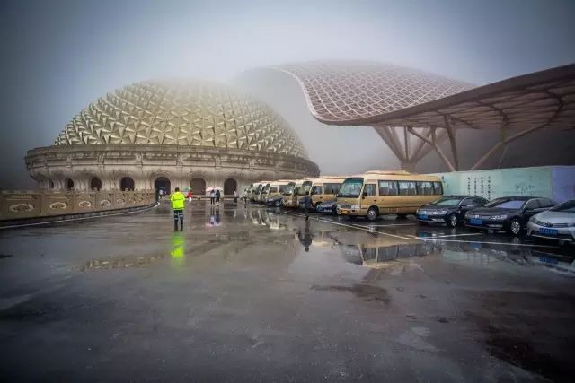 今天一早天气阴阴的,我们到达佛顶宫的时候,天空有雾,却有种置身仙境的感觉。