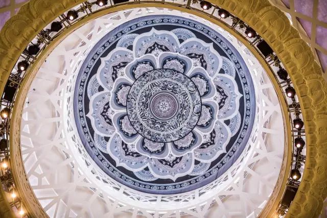 踏进佛顶宫地上一层,首先吸引人眼球的就是大殿的顶部。也就是在这里举办了开幕式。