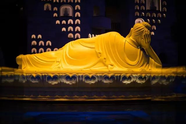 舞台中心为卧佛旋转莲花台,卧佛可随台面进行360度旋转,寓意佛法恩泽四方。