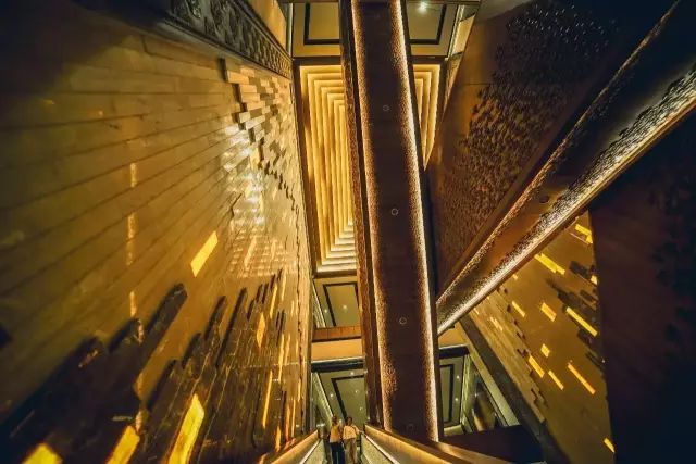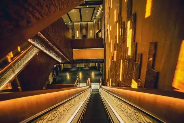 扶梯周身画满了祥云图案,踏上通往佛门圣殿的云梯,抛开红尘杂念,心净如泉。