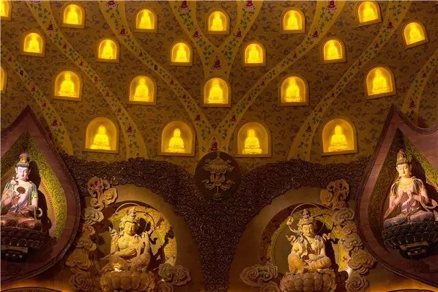 置身于整个舍利大殿,让人不仅能够深刻感受佛国天宫的殊胜美妙,以及舍利供养的无限庄严,还能领略当代中国佛教艺术的丰富绚烂,以及制作工艺的集大成之美。