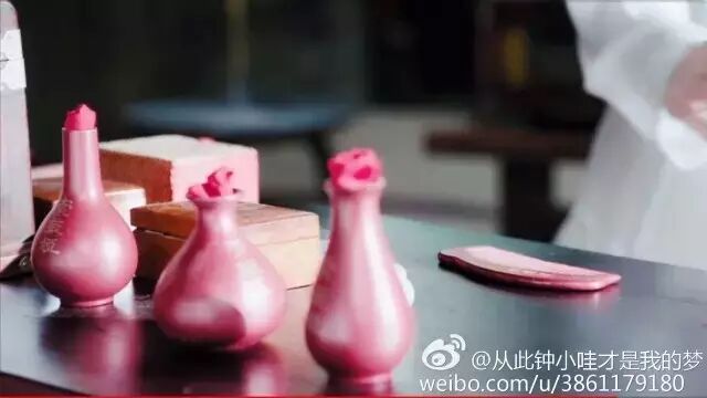 angelababy坐在化妆镜前时,镜头给了这套粉嫩的瓶瓶罐罐一个特写,仔细一看最左边的瓶子上赫然写着“索薇娅”三个大字!