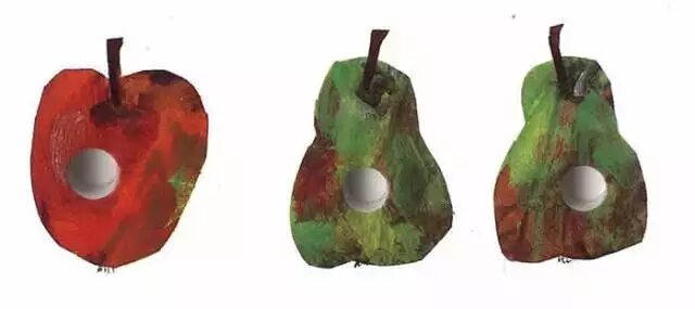 最叫人拍案叫绝的,是每一个水果上都挖了一个小圆洞,从正面看还没什么,可翻过来一看,哈,一只不停叫饿的毛毛虫正在从小圆洞里爬出来!毛毛虫就这样透过书页上的小圆洞一直吃个不停,吃到最后,变成了一条巨大无比的毛毛虫,变成了一只五颜六色的蝴蝶。