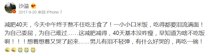 看看沙溢的微博,想想自己减肥的心路历程,都是眼泪……