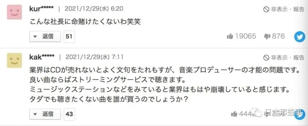 就算靠卖楼赚到了钱,但对手上的艺人继续摆烂的话,现在的艾回也无法挽回颓势。连日本网友都看不下去了,有嘲笑的,也有指出是不重视音乐制作以及流媒体导致的↓
