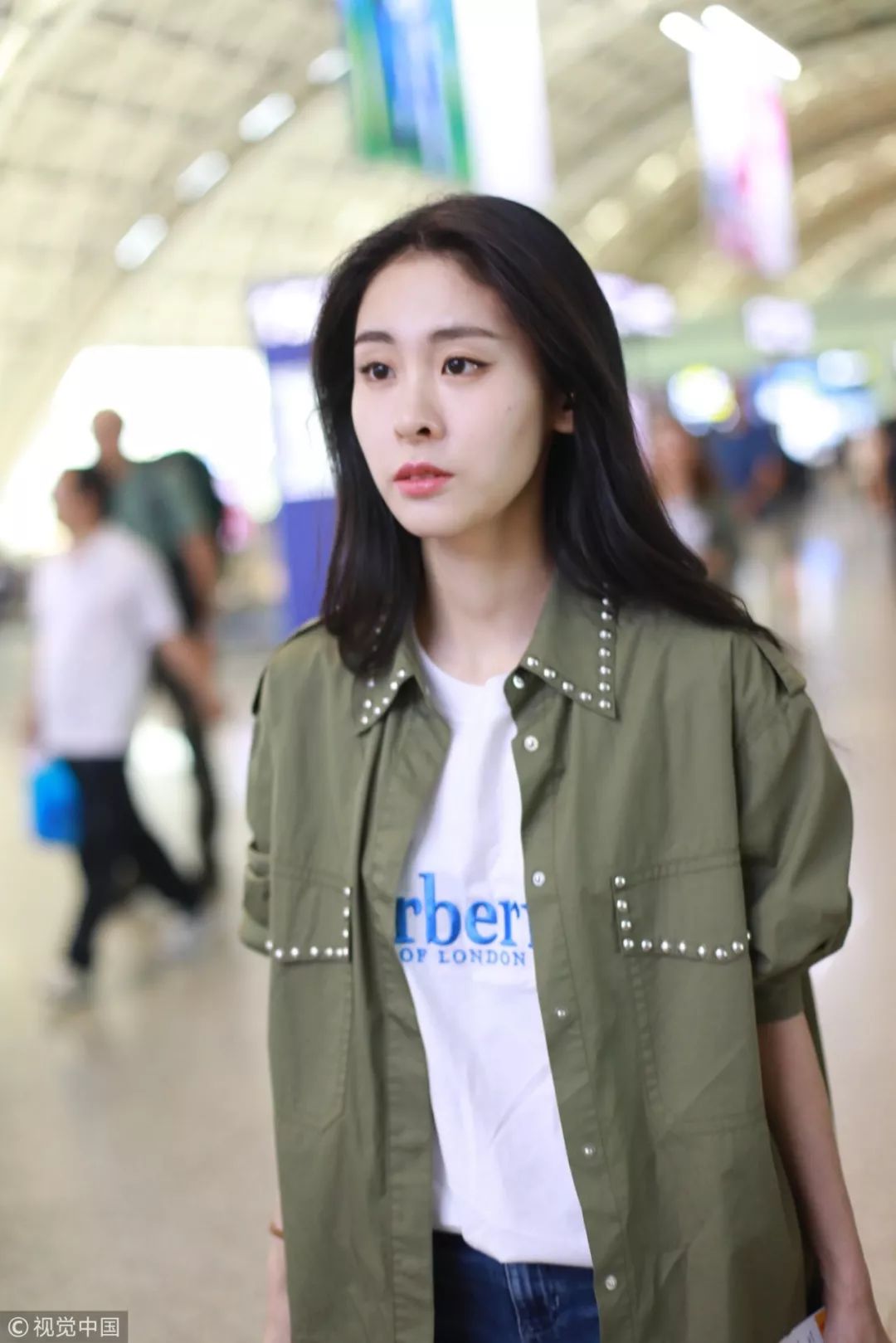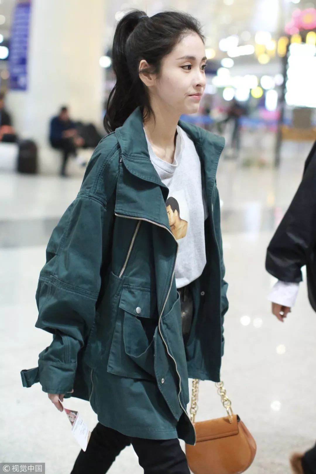 ▲软萌的张碧晨扮酷也很有一套,白T外搭军绿色大外套了解一下~