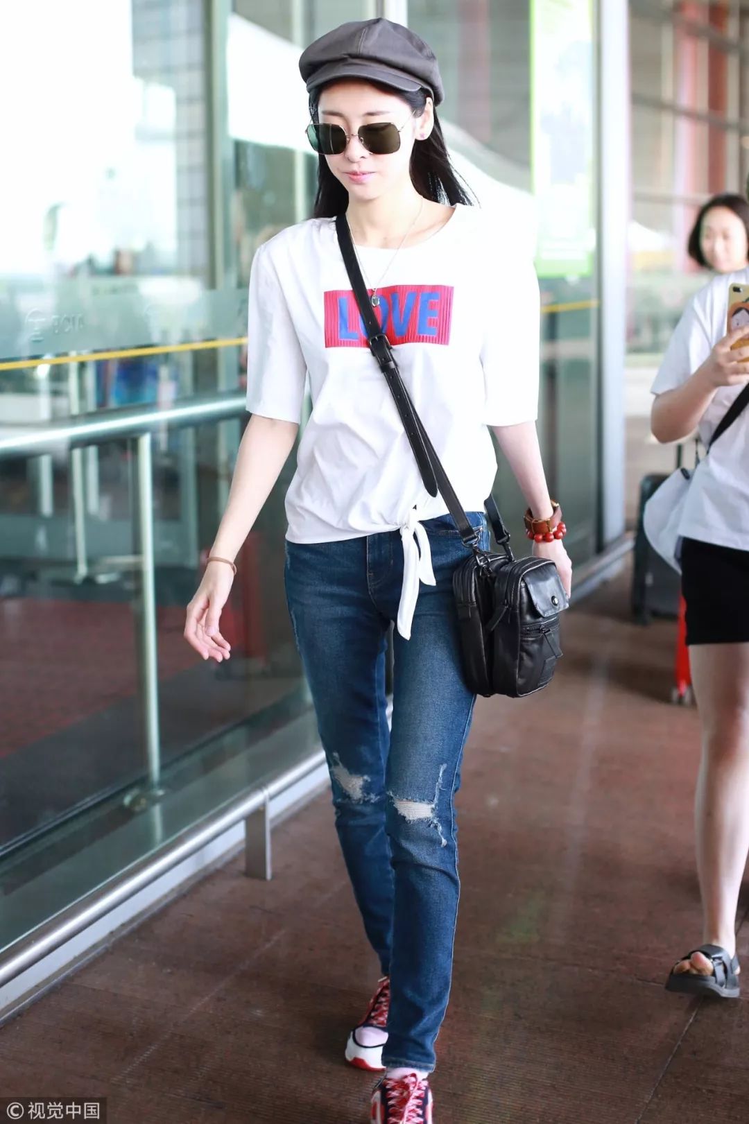 ▲张碧晨的街拍是以简洁大方为主。简单的白t加牛仔裤,配上一顶灰色的八角帽,充满着学生气息又带有复古的特色。