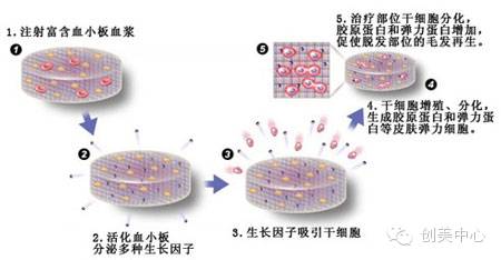 而注入到皮下的浓缩血小板一旦被激活,能释放9种生长因子,其中血管内皮生长因子、成纤维细胞生长因子、表皮生长因子,能帮助建立血液循环,让组织再生,修复老化肌肤。