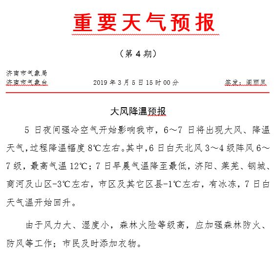 济南市气象台3月5日16时发布的天气预报: