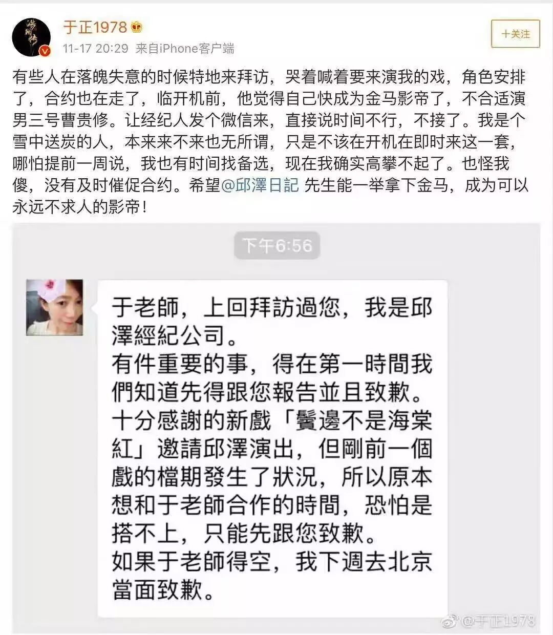 因为一个男三号的角色,被于正挂▼▼▼