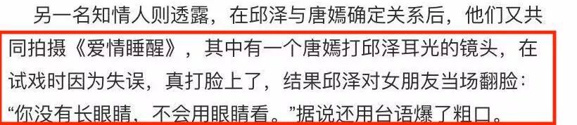 一个打耳光的镜头,唐嫣失误真打邱泽脸上了,被邱泽大骂▼▼▼