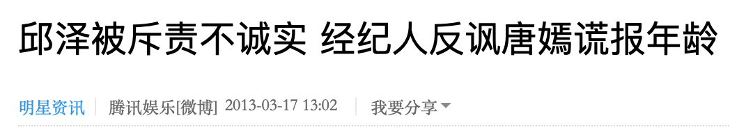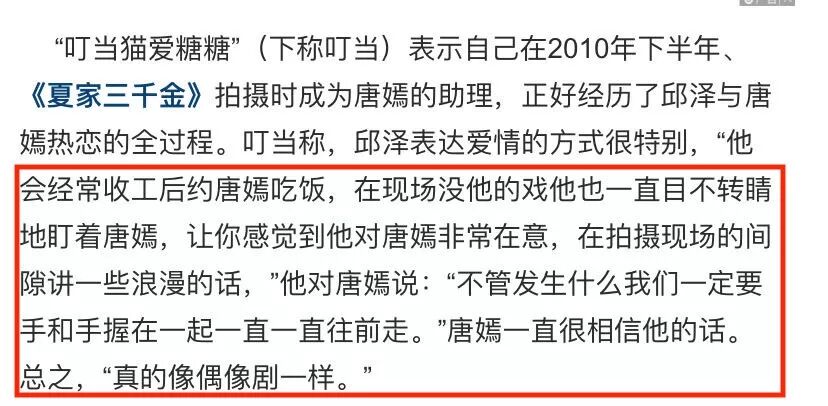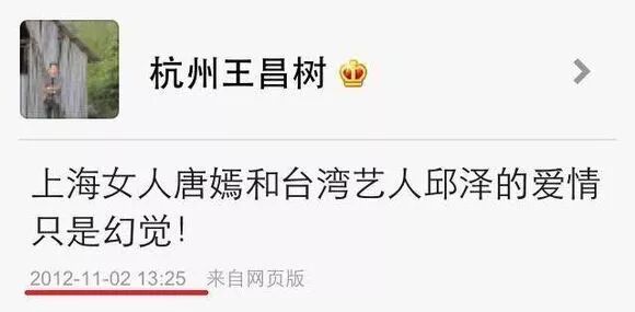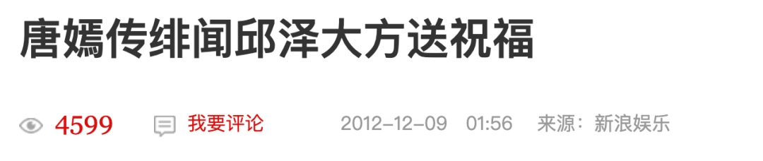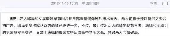 2012年11月,网上大量流传唐嫣父母嫌邱泽学历低的通稿▼▼▼