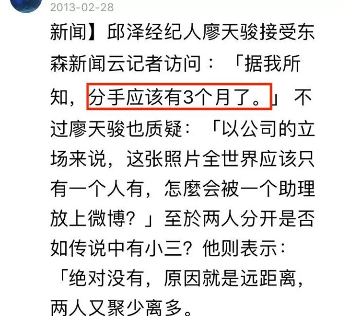 邱泽经纪人就补充两人已经分手3个月,且没有小三▼▼▼