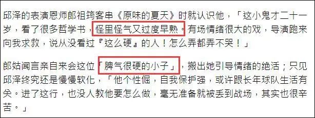 邱泽的师傅郎祖筠曾评价他怪里怪气,过度早熟,脾气很硬,个性很倔▼▼▼