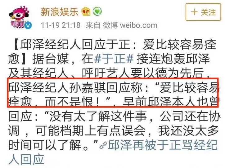 回应还和于正讲“大爱”,说“爱比较容易痊愈,而不是恨”▼▼▼