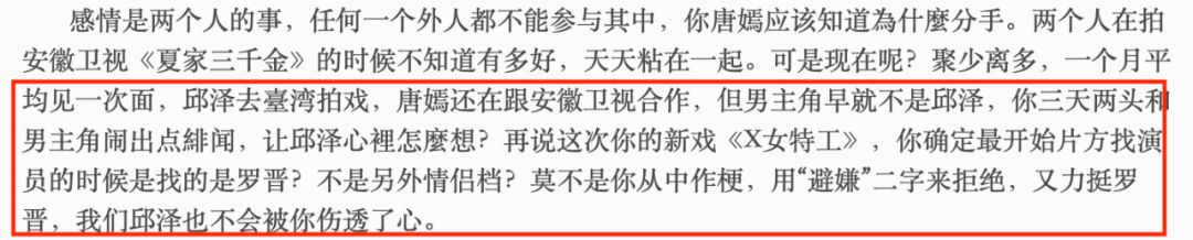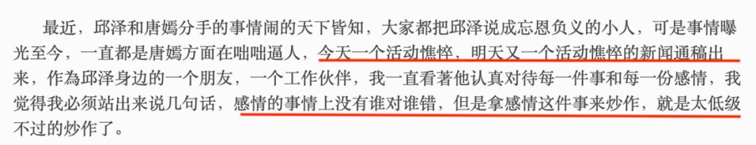 曾经有过一篇自称是邱泽工作伙伴写的爆料,他控诉唐嫣一直在卖惨炒作▼▼▼