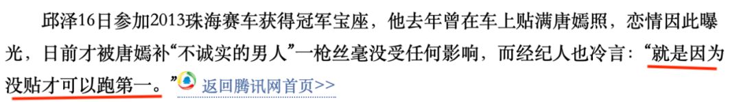 邱泽赛车比赛赢了,经纪人还要阴阳怪气地说,“因为没贴唐嫣照片才赢第一”▼▼▼