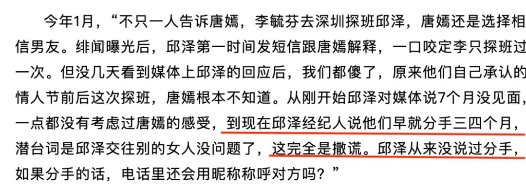 她强烈反驳了邱泽方说的三四个月前分手的说法,说邱泽从来没有说过分手▼▼▼
