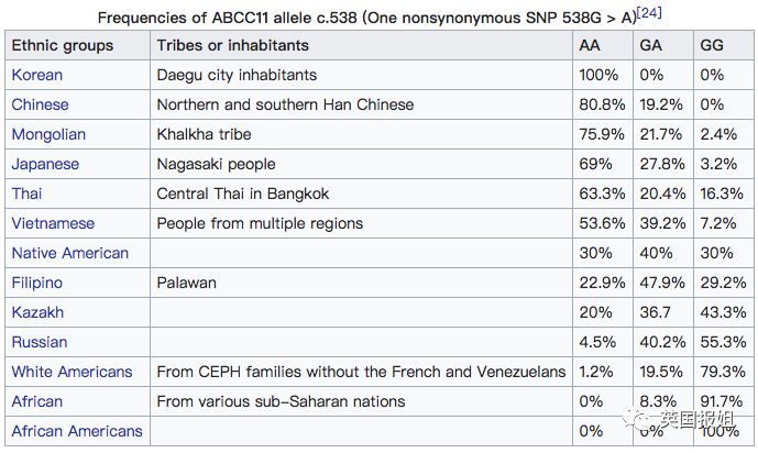 据日本长崎大学公布的大汗腺研究,日本的科学家收集了全球多个民族的ABCC11基因样本。这个基因的表达和人体的体味、耳垢紧密相连。