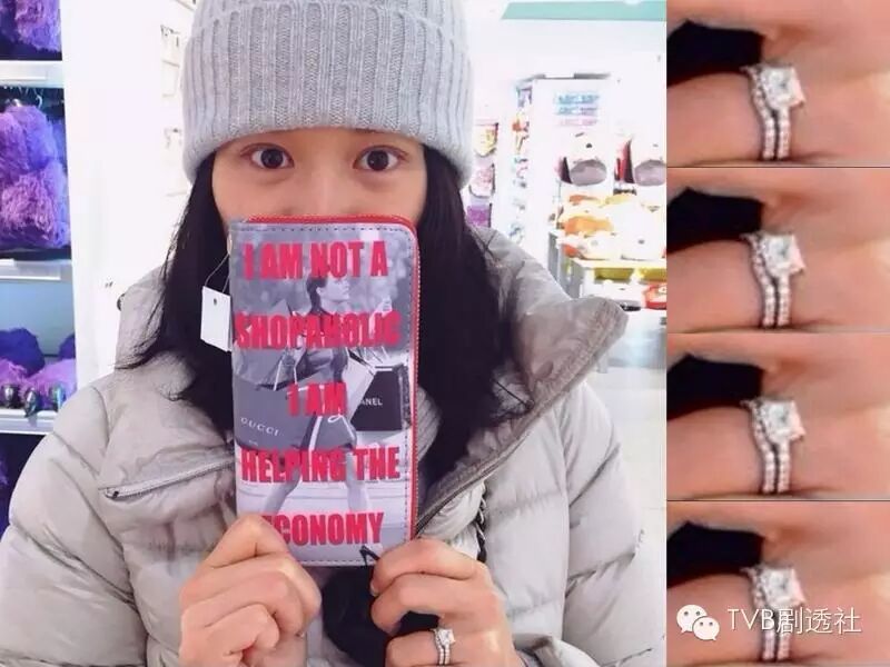 杏兒老公Philip今日凌晨在IG就上載一張與杏兒購物的相片,杏兒手上拿著印有:「我不是購物狂、我是幫助經濟的銀包」,但看者好容易聚焦在杏兒拿銀包左手的無名指上,因戴著閃亮的超大方型鑽戒,相信是Philip親自設計的鑽石婚戒了。