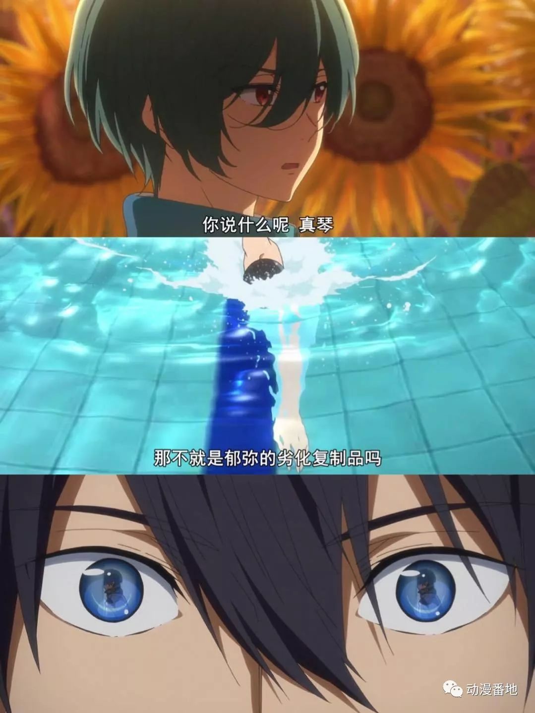 第三季的话,米娜桑可以理解为是主角们的大学游泳生活。此次还多了不少新人物,重点要说的是遥的三个少年时期的游泳玩伴,另外两位我们就撇开了,重点说说这个绿毛小哥哥,是不是和遥cp感十足.看得出来两人都是十分在乎对方,根据郁弥朋友的说法,两人游泳的姿势是一样的,但到底是谁向往谁还不好说,总之个人觉得应该会和遥凛线差不多,有误会然后比赛个几次,就又成了好盆友。