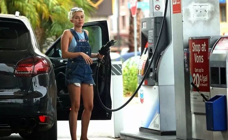 在这张照片中,Miley Cyrus看起来不合适,为她的保时捷SUV充气。她不喜欢做这种琐碎的苦差事,也不喜欢狗仔队拍摄她的照片。作为流行歌手和女演员,她习惯穿着大声的服装,唱歌和在舞台上表演。加油站是人们期望找到这颗恒星的最后一个设置。报道她在这张照片中位于西好莱坞的加油站。